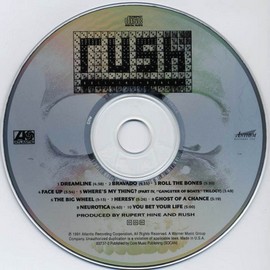 También hay un par de hechos curiosos como es la vuelta a componer una canción instrumental después de mucho tiempo (obligados parece ser por Neil), "Where's My Thing?, Pt. 4: Gangster Of Boats Trilogy" (nos quedamos sin las otras tres partes de la ¿trilogía?) y la primera y última inclusión de un rap en un tema, el de "Roll The Bones". A pesar de que en alguna entrevista han declarado que es la voz de Geddy con mucho efecto añadido yo sigo sin reconocerla. En todo caso un intento de añadir un toque cotemporáneo a su música que es mejor olvidar.